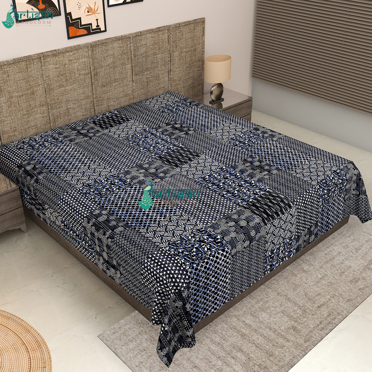 Elevate your bedroom with the charm of traditional craftsmanship and modern comfort. Cotton fabric Queen/Twin size kantha Stitch Quilt, Blanket / Bedspread. This beautiful handmade kantha reversible blanket can be used for a single bed cover, or throw blanket. It’s thin, light and soft. Kantha blanket made entirely by hand using 100% natural organic cotton. Hand dyed and hand stitched with high quality tight stitching.